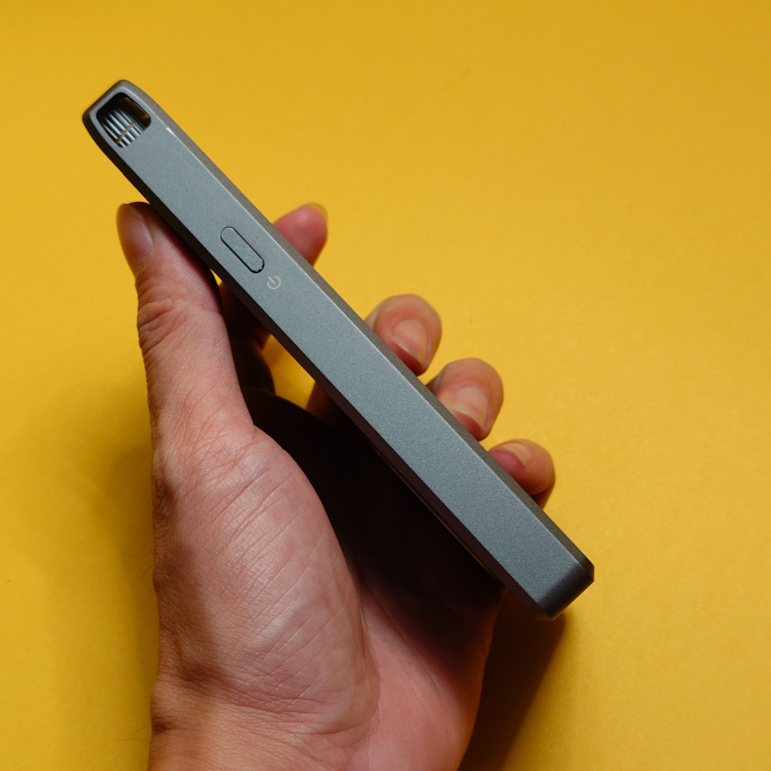 Thiết kế vỏ kim loại nguyên khối màu bạc cao cấp, hoàn thiện tinh xảo với mặt kính và vòng xoay điều khiển đặc trưng. Cảm giác cầm chắc tay, thao tác mượt mà và mang tính nhận diện cao.